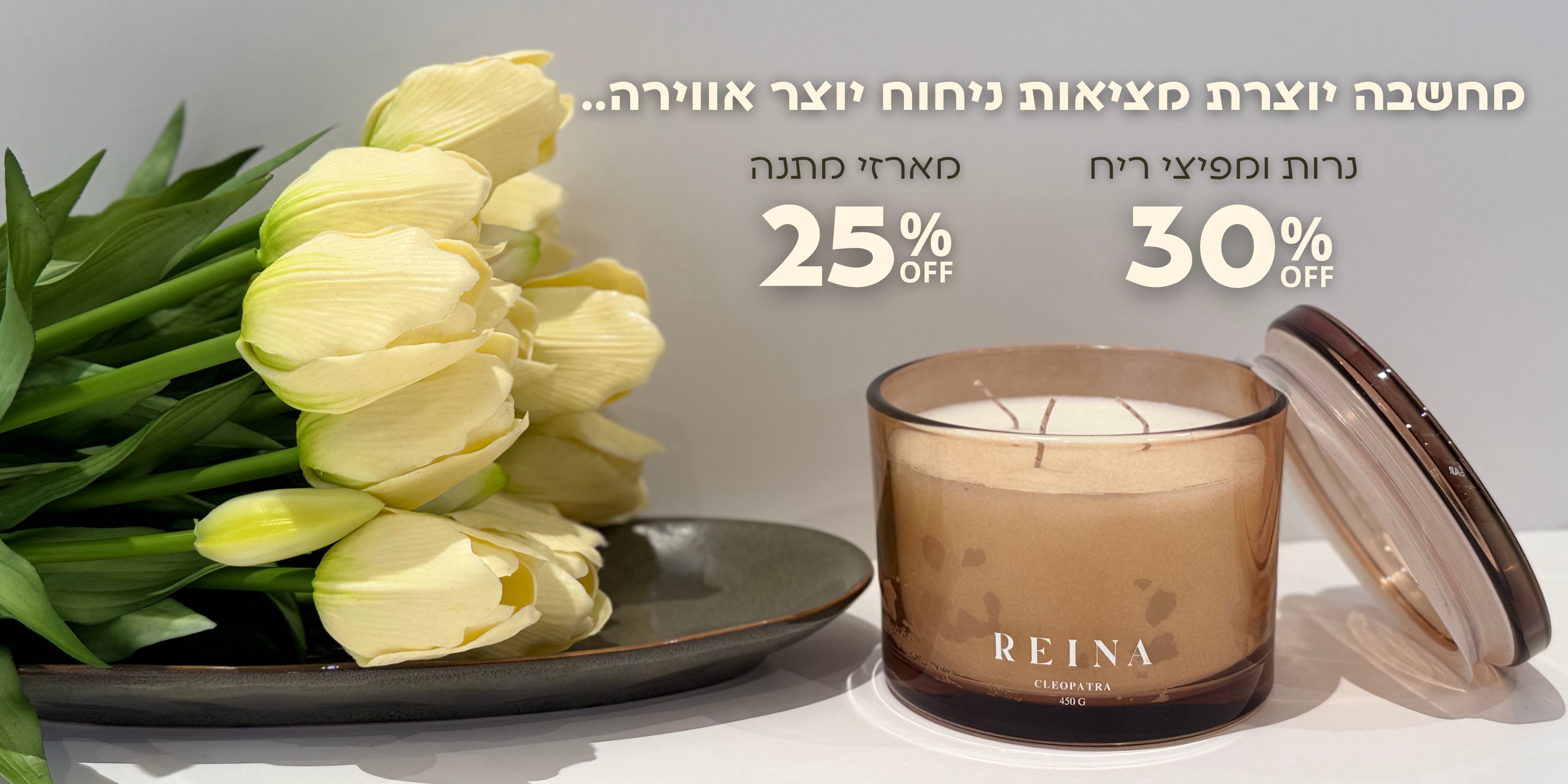 אנחנו מחכים גם לכם! בואו לחוות את חווית Reina בסניף, שם יחכה לכם שפע של ריחות ועוד המון אקססוריז ייחודיים לעיצוב הבית.