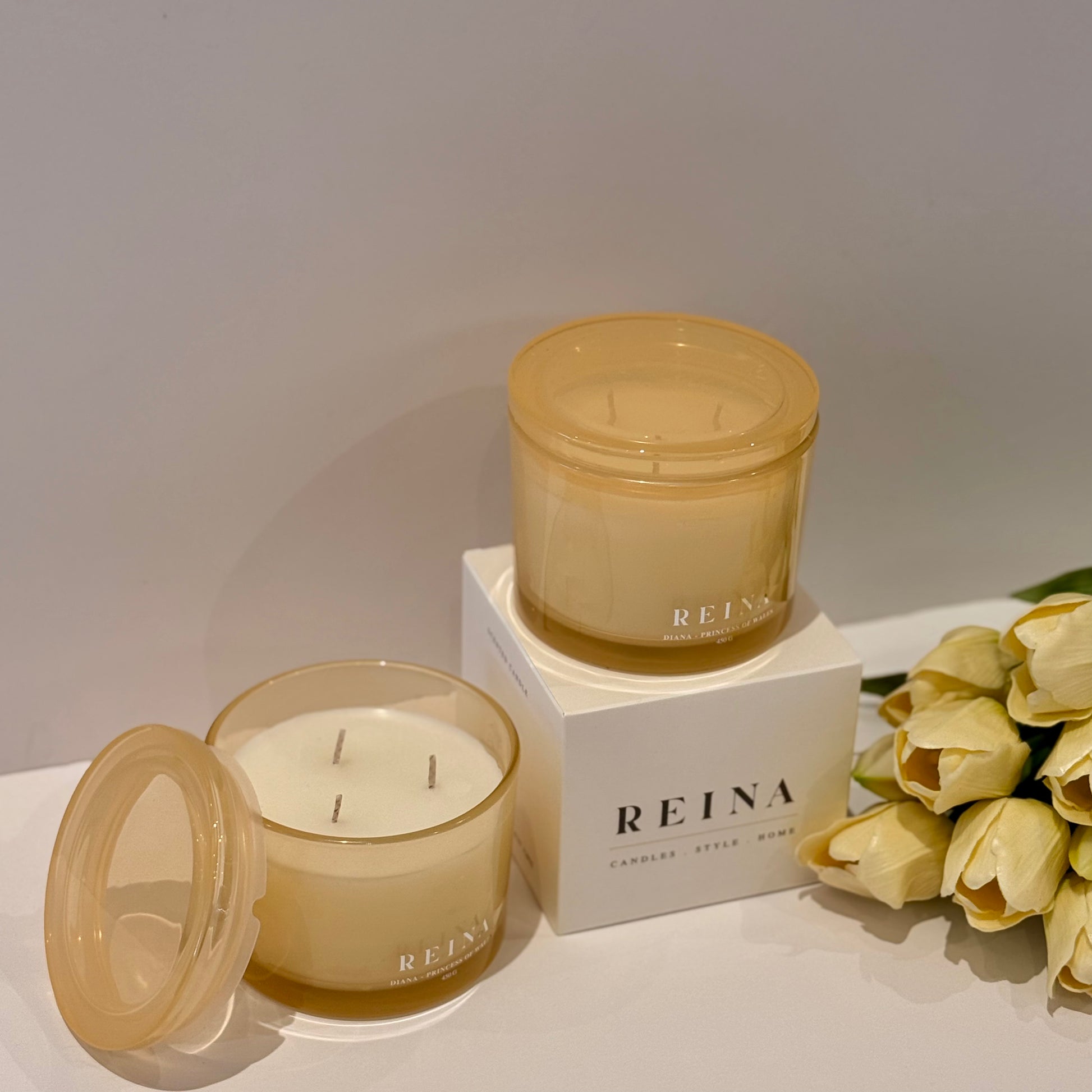 נר ריחני 450 גרם בניחוח עוצמתי של וניל, קוקוס ופרחים PRINCESS DIANA - NEW COLLECTION