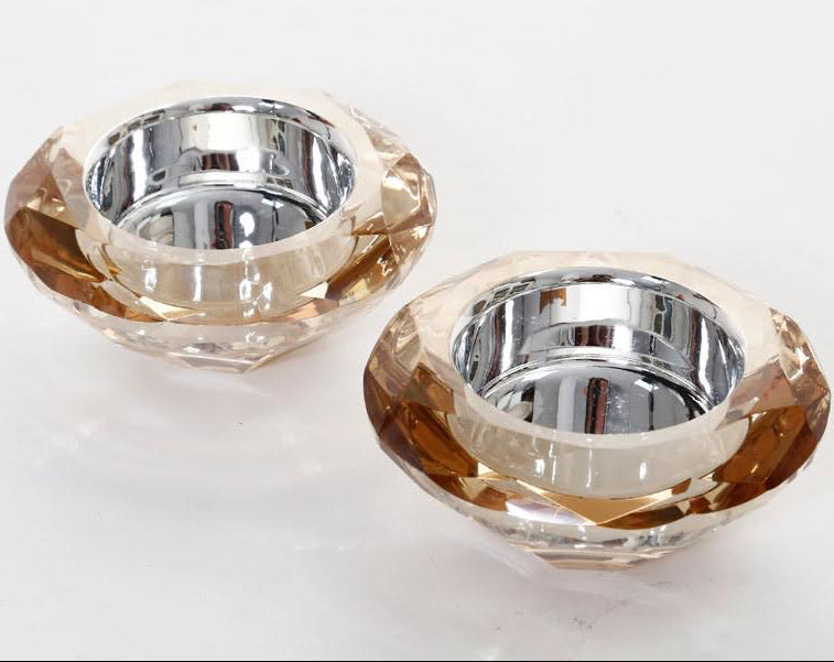 זוג פמוטים קריסטל בצבע ענבר